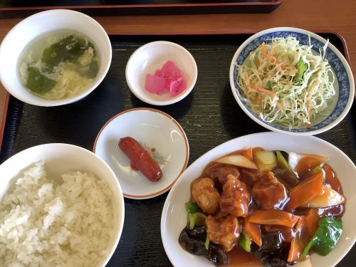 酢豚定食を注文しました。熱々で美味しかった。小皿のウインナーは個人的に要らないかなと。